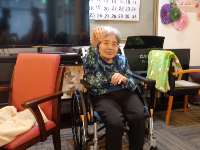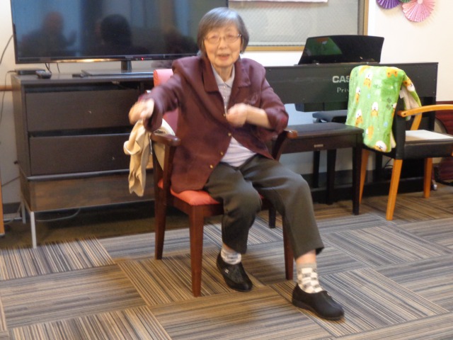 など体を動かすプログラムの時は、一緒に手を握り体操を行っています(^^)v