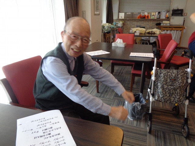 ケアさんがヒントを出しながら・・・最初照れていた入居者様も、クイズが