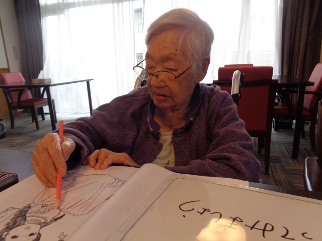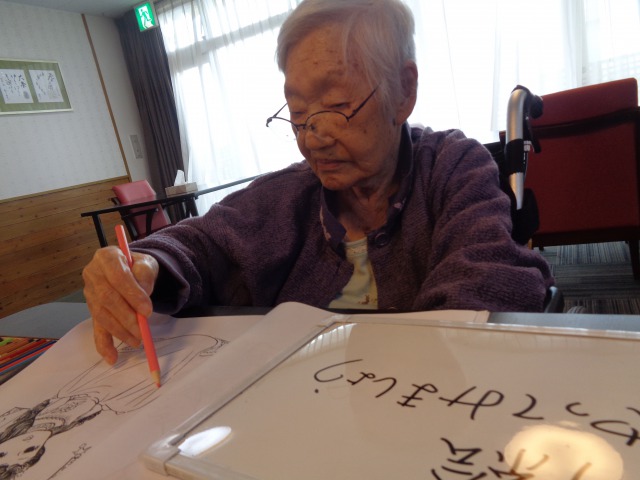 筆談で「塗り絵をしましょうか?」とお誘いすると