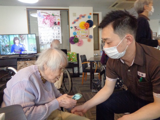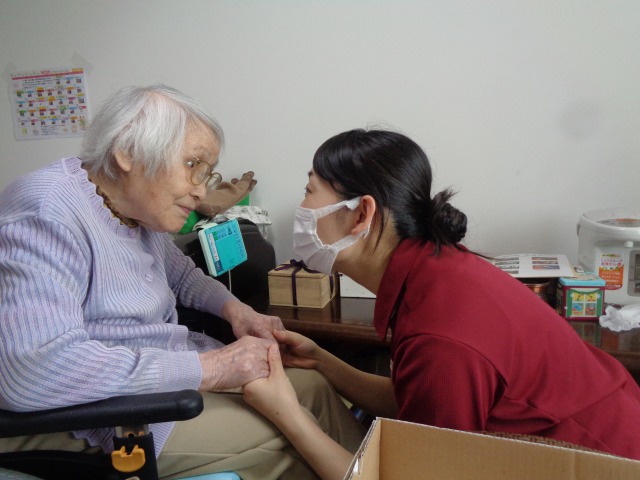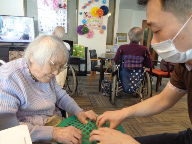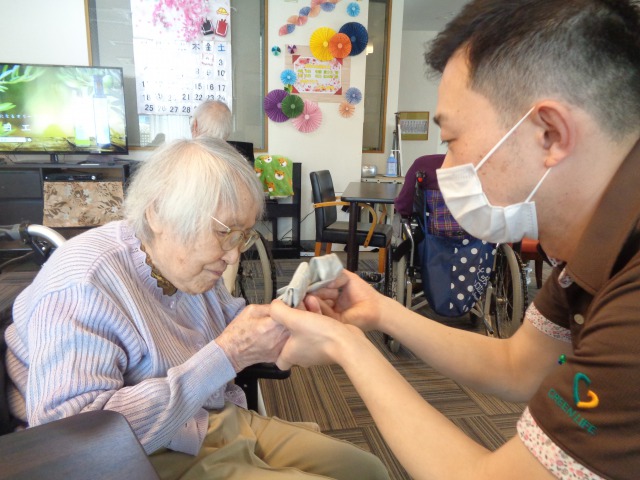 手と手を取り合うケアリーダーとご入居者様でした💕