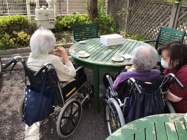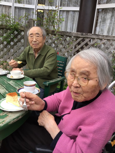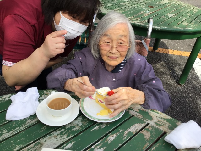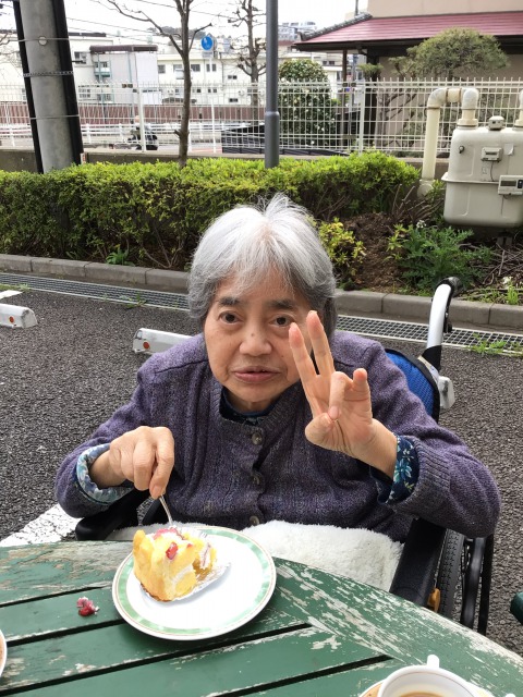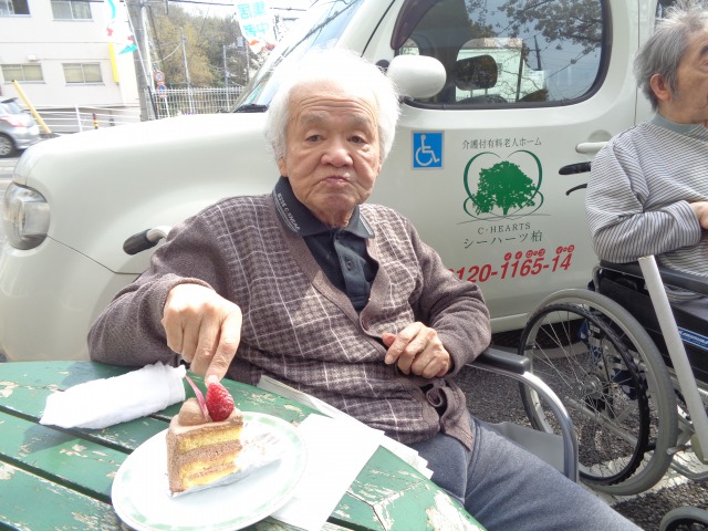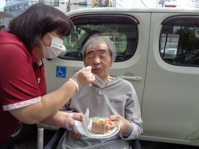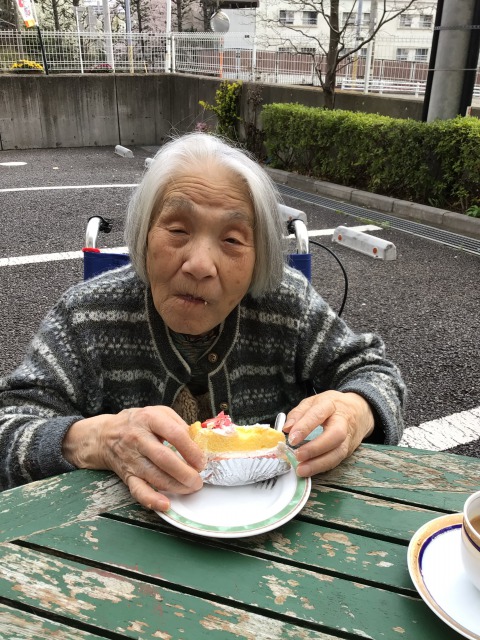 「きれいだね~」と🌸を眺め、ケーキを食べながら・・・