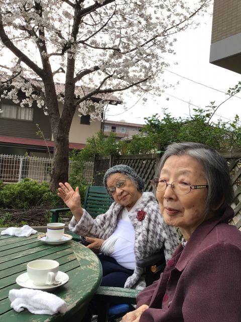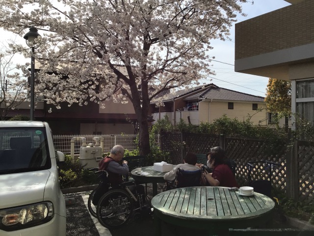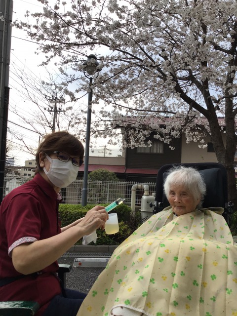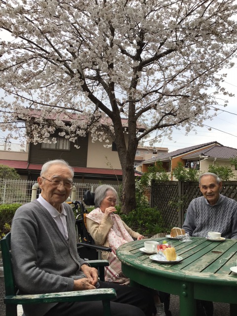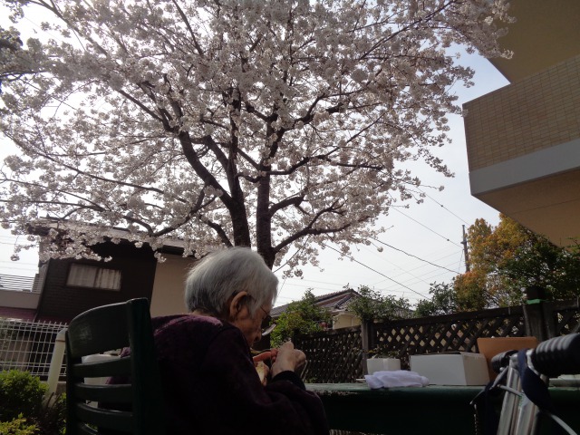・・・「桜の下でケーキの販売会ですか~ご苦労様です」とご入居者様
