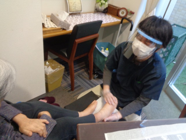 爪のケアの後、クリームでマッサージも♬