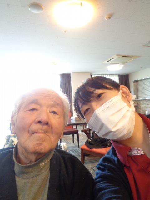 ケアさんの顔を見ると「あ~来たのか~😊」とご入居者様。