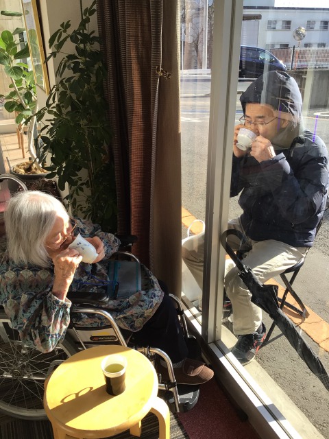 おられます。今日は「玉ねぎスープ」を窓越しに一緒に飲んでおられました☕