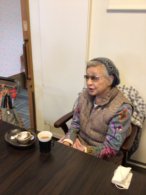 施設長からのミッションで、くつろいでいるご入居者様のもとへ💨