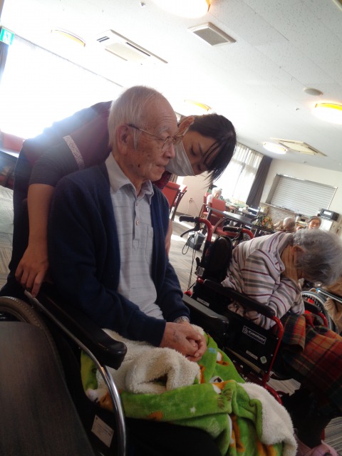 片麻痺のあるご入居者様の片腕になり、私も一緒に参加すると