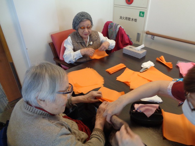 皆さまの前に材料をお渡しすると、次々と仕上げていくご入居者様
