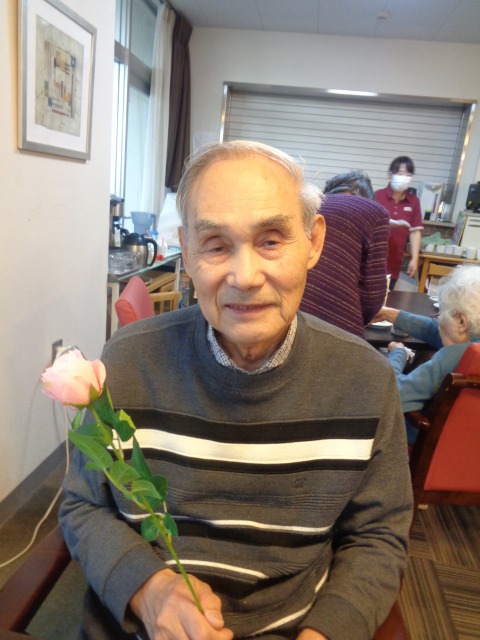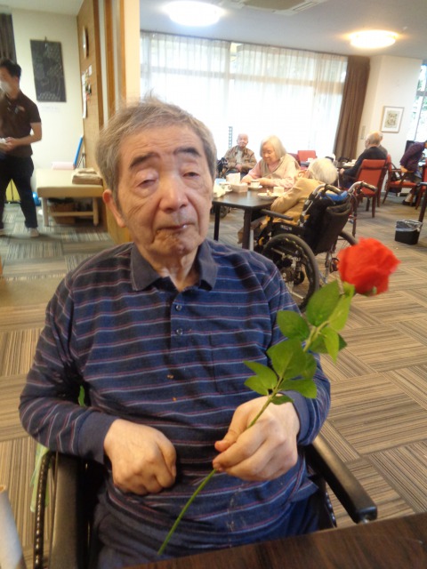 ・・・バラを持った施設長やご入居者様の写真がΣ(・ω・ノ)ノ!