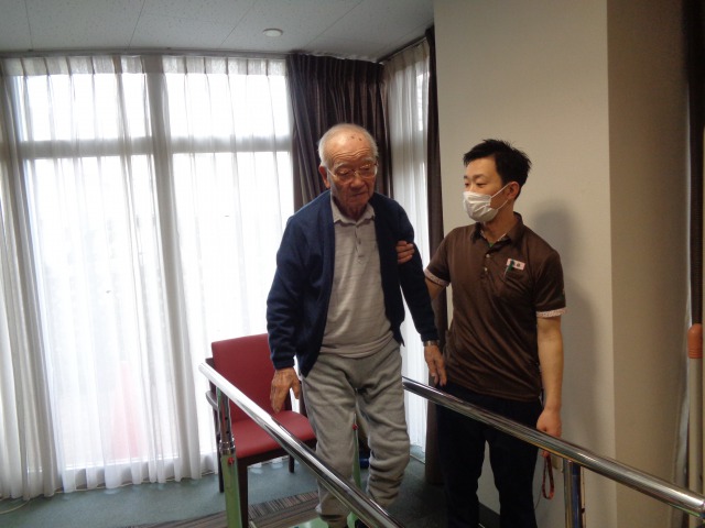 踏み台の高さもUPしたり、歩行訓練とまだまだリハビリは続きます‼