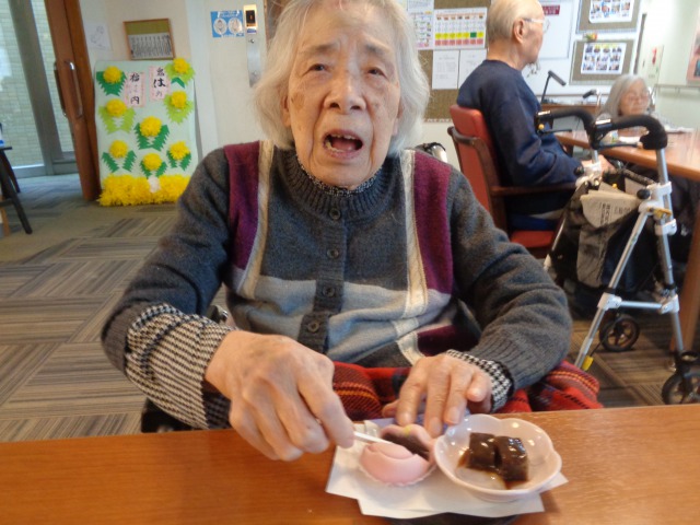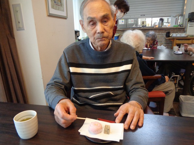 昨日行われた「和菓子レク」のご様子を何回かに分け