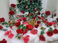 飾り棚は、ツリー🎄の周りに積もった雪、そしてバラ🌹をちりばめてみました~