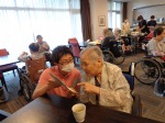 お耳の遠い方も多いので、施設長のマスクの中はガーゼを重ね入れし感染予防もばっちり‼