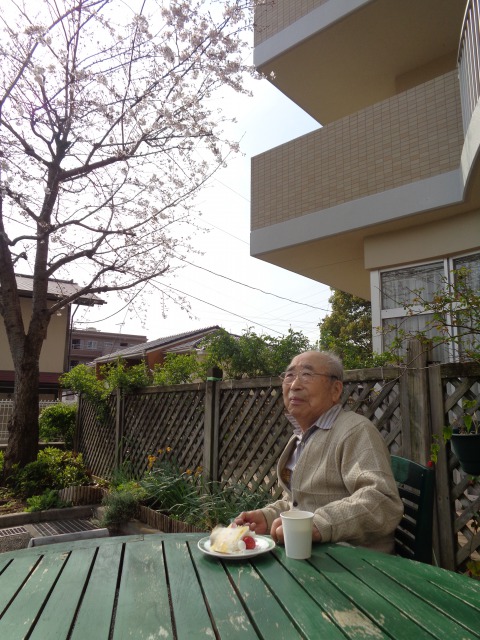 さくらんぼをいっぱい食べて頬がはちきれそうに