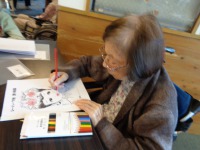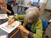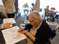 しばらくして皆様の様子を見に行くと、初参加の入居者様も塗り絵に夢中。