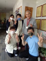 ご本人様、少し照れ臭そうでしたが金メダルを首にかけ施設長と、そして皆で写真を1枚ずつ。