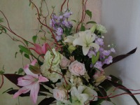 飾り棚のサクラも散り、新しく生花を活けなおしました。