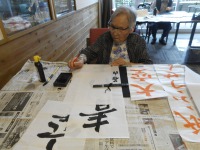 今回は久しぶりに長い半紙を使って、書初め風で行いました。