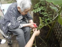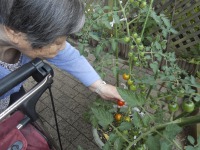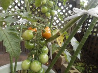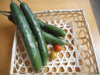 さて、先日もご紹介したテラスの畑で育てている、キュウリとトマトが