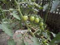 テラスの畑にて栽培しているトマトときゅうりですが、