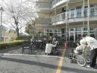 満開に咲いた桜を見ながら、ケーキやお茶を楽しみました♪