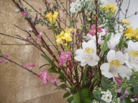 桃、コデマリ、アルストロメリア、フリージャーを使い、