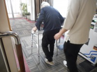 入居者様の様子を見に行こうとしたところ、歩行器でリハビリを