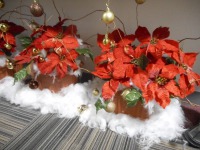 カウンターの下にあるポインセチア、周りは雪に囲まれてる風に♪