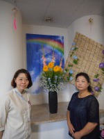 写真に写っているのは、いつもきれいに花を活けてくれる師匠(右)で、