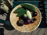 ご普通のゴーヤと、白ゴーヤ、そしてまぁるいのは茄子になります。