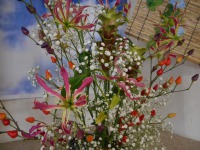 今回は、クルクマ、グロリオサ、かすみ草、トガラシを