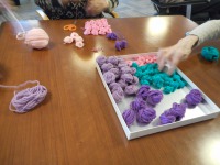 入居者様が事前に準備した、毛糸を使って園児たちと一緒に鯉のぼり作成。