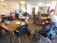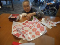 昨日は、入居者様に飾りつけに使う桜の花を、ハサミで切って頂きました~