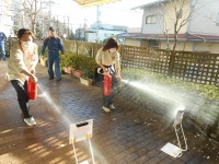 外のテラスで、消火器の訓練を行っている職員の見学をしました。