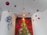 飾り棚にもクリスマスの飾りつけをしてます♪