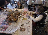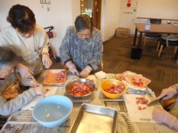 入居者の皆さんには、芋煮の具材となる野菜を切ったり、里芋の皮を剥いたりと