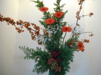 今回はオレンジのガーベラを中心に、レースフラワー、