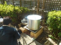 天気にも恵まれ、朝から職員が手作りのかまどで、
