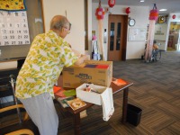 入居者様も夏祭りに向け、ゲームに使う道具の作成を手伝って頂きました。