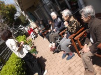 暖かい日光を浴びながら、お花を見ておしゃべり♪