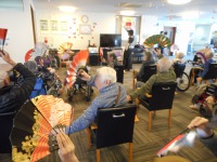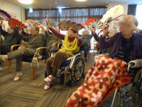 舞扇を使い、車椅子の方でも楽しく出来る内容で、皆さんがよく知っている