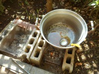 テラスで大きな鍋で芋煮を作り、隣では秋刀魚を焼きました。