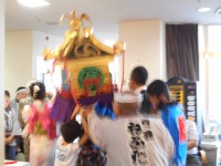 入居者様、ご家族、職員、皆で御神輿を担ぎ、周りからは