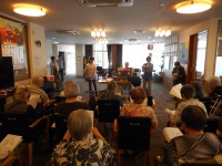 演奏下さいました。入居者様も曲に合わせ大きな声を出し歌っていただきました♪