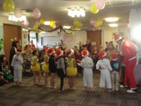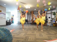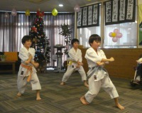 職員のお子さんとそのお友達による、カラテの型と新体操を披露してもらい、職員も色々な歌に踊りと披露しましたが、