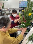 こんにちは、シーハーツ柏です。 2024年の最後の生け花の時間です。 入所者様は松や菊 千両などお正月飾りにぴったりなお花に囲まれて、和気あいあいと活気溢れる時間となりました。 「松は背が高いですね。」と、松に圧倒されていました。 作品が完成すると、達成感と同時に嬉しい笑顔が見られています。
