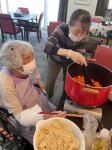 こんにちは、シーハーツ柏です。今年の敬老会は入居者様が主役です。 スタッフが入居者様にお料理を教わりました。メインの献立は、酢豚と肉じゃがです。大きなお鍋に野菜を入れる順番などを、教えていただきました。 肉じゃが担当の入居者様のY様。「ある程度混ぜたら、すこし置いておいたほうがいいのよ。」「玉ねぎは、どろっとならないように、透明になって繊維が残るぐらいがいいわね。好みにもよるんだけど。」と、細やかなアドバイスをいただきました。酢豚担当の入居者様のK様は、暑い中 大きなお鍋に入った具材を炒めてくださり、「もう少し酸味があったほうがおいしいよね。お酢を足しましょう。」と、味付けもバッチリです。 味見をした施設長。「あちちっ!とっても熱々でおいしいですね。 ホクホクしてますよ。」と、この表情。漫画のようなこの表情。 どんなお味になるか楽しみです。