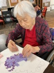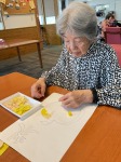 こんにちは、シーハーツ柏です。 今日は、折り紙を使って、秋の果物を表現しました。小さく折り紙をちぎって貼り付けます。「私は、秋の果物と言えば、梨が好きです。」と、入居者様。では、梨を作ってみましょう。小さく千切る作業も、久々でしたので、慣れるまでに時間がかかりました。なんとか形になり、30分ほどで完成。ちょっとした手の運動です。