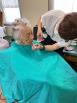 こんにちは、シーハーツ柏です。 訪問理美容でお世話になっています、ディチャームさんの訪問がありました。夏らしく、涼し気なカットに仕上げていただき、入居者様もとってもご機嫌。リップやアイブロー、男性の入居者様には髭剃りや耳回りのお手入れのサービス付きで、にっこり笑顔がこぼれます。「今度は染めてみようかしら。」と、相談されていました。ヘアーカットは特別なお楽しみですね。
