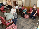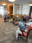 こんにちは、シーハーツ柏です。リハビリ教室のご様子です。ボールを蹴って色ごとに分けられたゴールにボールを運びます。入所者様O様のお隣には、心強い2人の女性入居者様のサポーターが。「はい! ボールを置きますから、しっかり蹴ってくださいね。行きますよ!」と、サポーターM様は気合が入りますが、肝心なプレイヤーは、、、ゆっくり ゆーっくりボールを蹴っていらっしゃいました。((笑) 「もっとしっかり蹴りましょう!勢いが足りませんよ。」と、声がかかります。 そんなマイペースで楽しいリハビリ教室です。